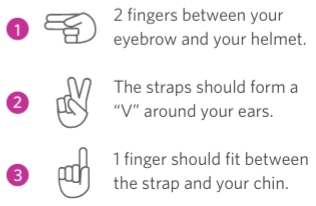 Wear a properly fitted helmet and secure it every ride. Your helmet can only protect you if you are wearing it properly. Follow the “2-V-1” method (see diagram below).